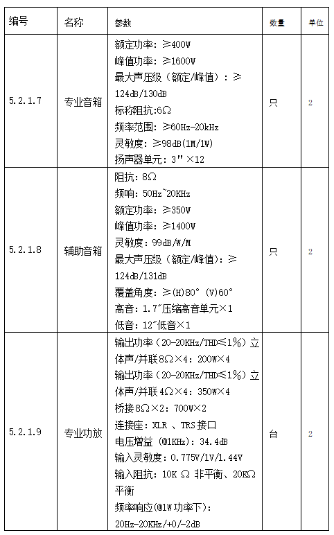 音箱、功放、会议设备 招标公告