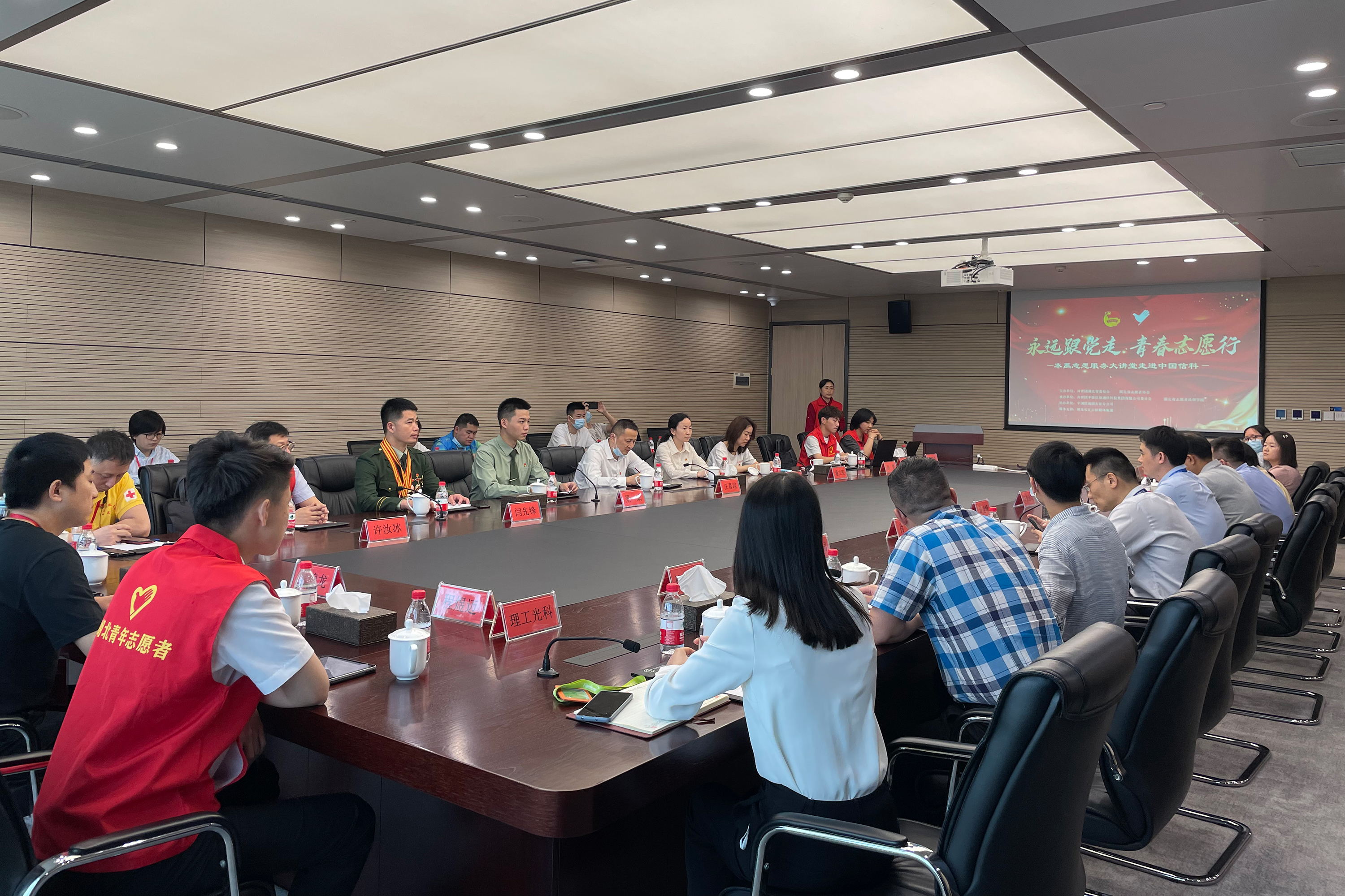 根据“喜迎二十大、永远跟党走、奋进新征程”主题教育实践活动总体部署,由共青团湖北省委员会和湖北省志愿者协会联合开展的“永远跟党走,青春志愿行”为主题的宣讲--本禹志愿服务宣讲团5月23日来到中国信科集团。集团团委副书记谭旭峰同志和肖乐同志携集团在汉各二级单位团组织书记及各单位优秀青年团员参会,本次会议由理工光科团支部全程对接省志愿者中心协助组织。